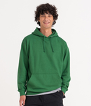 Drop shoulder style. Soft cotton faced fabric. Double fabric hood with self colour drawcord. Front pouch pocket with small hidden opening for ear phone cord feed. Ribbed cuffs and hem. Twin needle stitching.