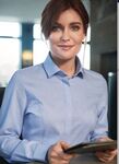 60% Cotton / 40% Polyester. Cotton rich, semi-fitted, long sleeve ladies blouse, Fly front, Button up collar, cutaway collar Matches Napoli blouse & Monza shirt.