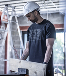 Ribbed collar.Taped neck.Graphic print detail.Twin needle sleeves and hem.